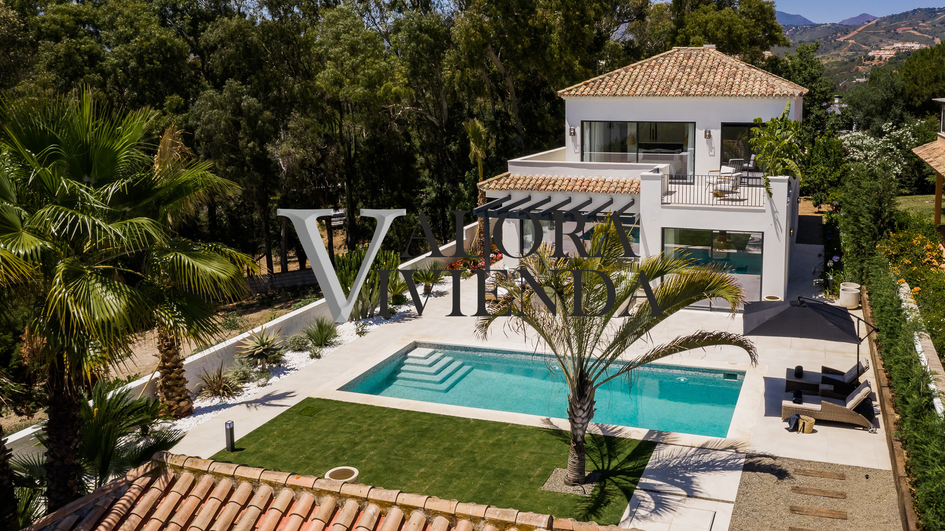 INMOBILIARIA VALORAVIVIENDA VENDE. Esta villa es una sinergia perfecta entre las características de estilo contemporáneo y típico andaluz. Combina materiales de alta calidad e instalaciones fáciles de usar con algunos detalles encantadores y cálidos. La parcela se divide en tres niveles diferentes, mientras que la parte principal de vida y entretenimiento se encuentra en la parte superior, asegurando la privacidad y las vistas panorámicas, en un jardín paisajista tropical.